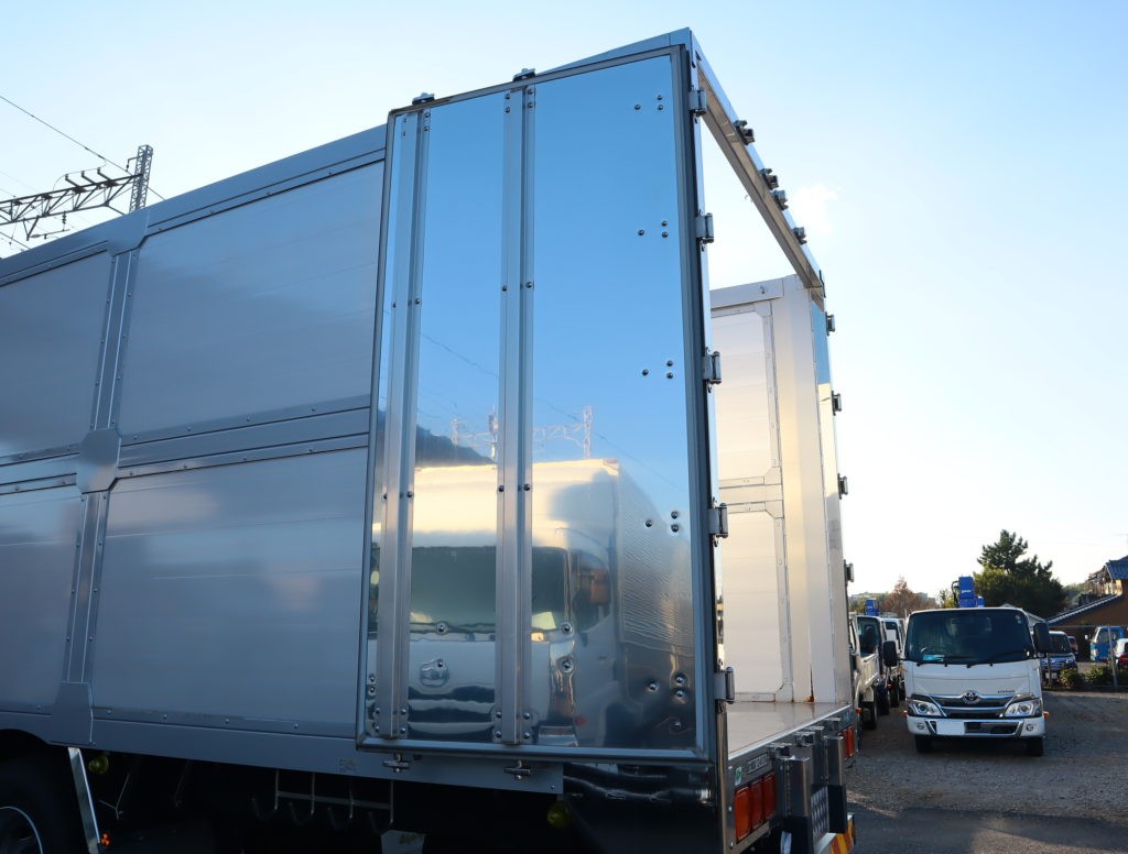 Nox適合 オダギリボデー 鳥居縞アルミ 内側はしご 横根太木・鉄 床SUS張(下木製) SUS・メッキパーツ多数 鳥居上工具箱 荷台内側鉄梁錆 各所傷 キャブ内汚れ